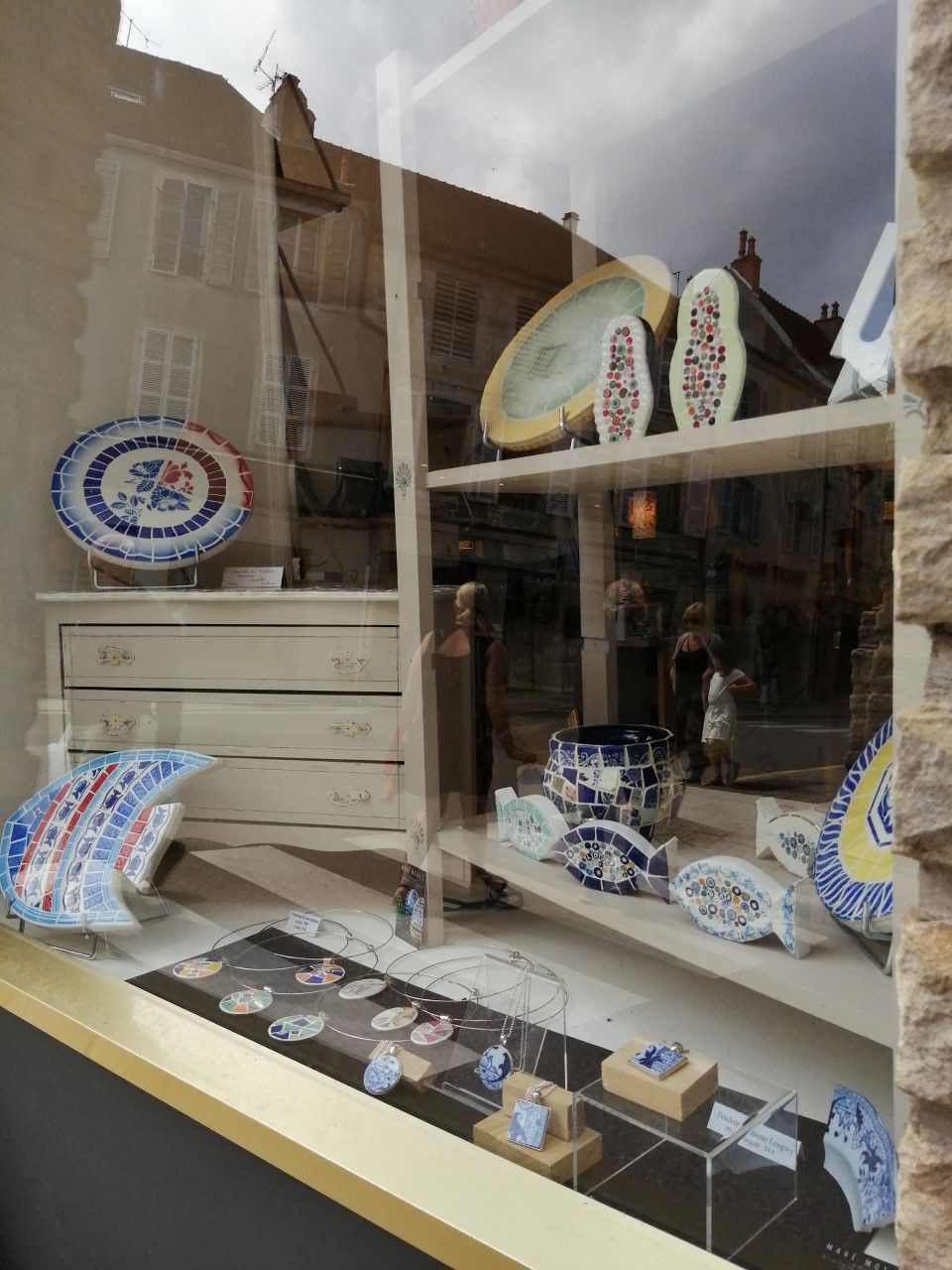 Meubles, miroirs, plateaux, dessous-de-plat et bijoux en mosaïque. De style "pique-assiette", c'est à dire avec des morceaux d'assiettes soigneusement choisis, ou à base d'émaux de Briare, de millefiori , de verres polis trouvés sur la plage, je crée des objets uniques et originaux. J'ai grand plaisir à travailler également sur commande.
